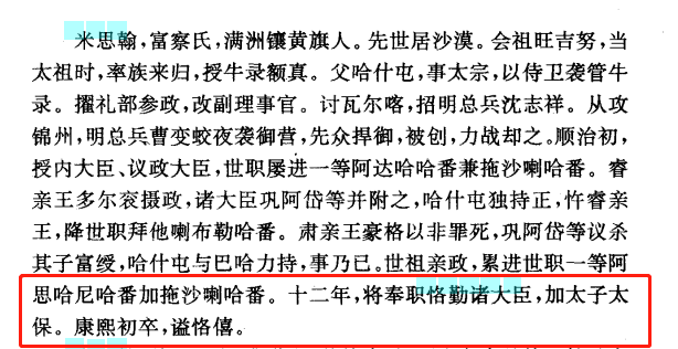 《清史稿》:米思翰赞撤藩之议,绸缪军食,足以支十年,知定谋有由也。