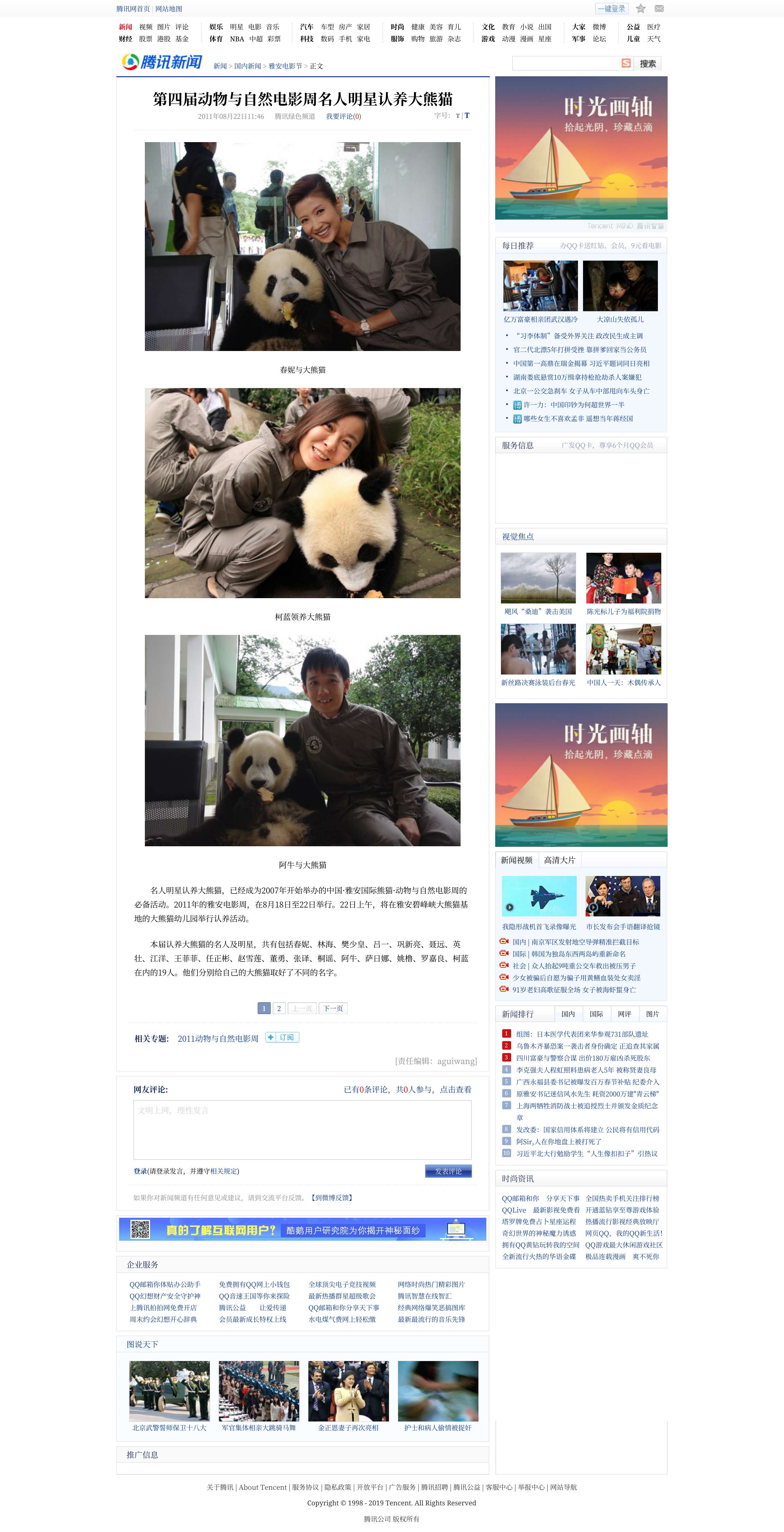 第四届动物与自然电影周名人明星认养大熊猫.腾讯网.2025-01-12