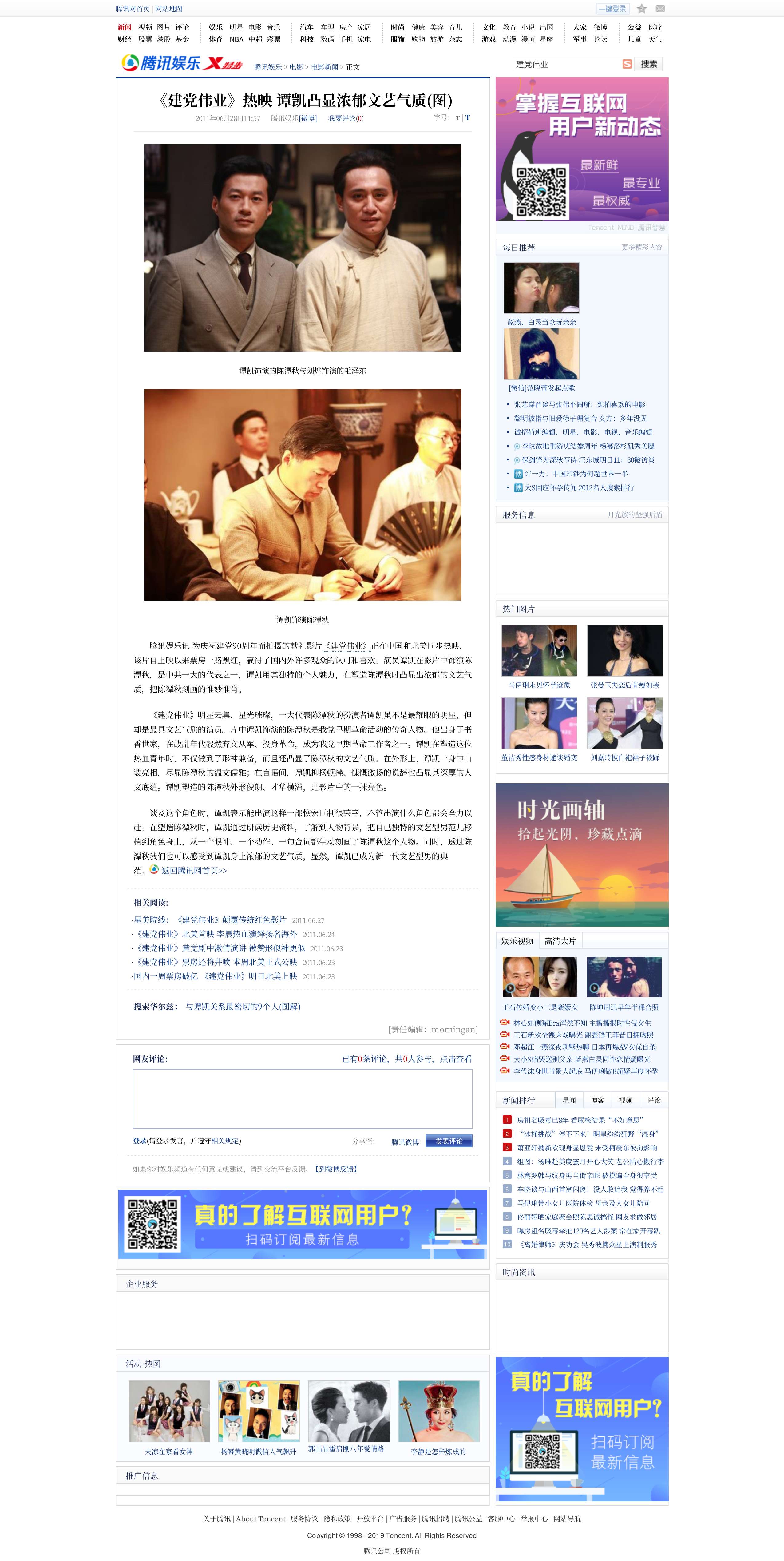 《建党伟业》热映 谭凯凸显浓郁文艺气质.腾讯娱乐.2024-12-15